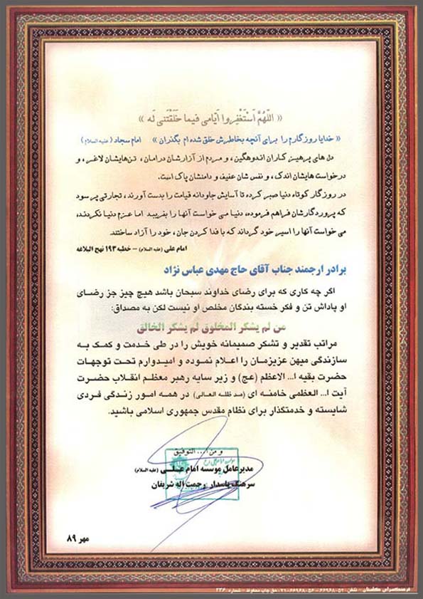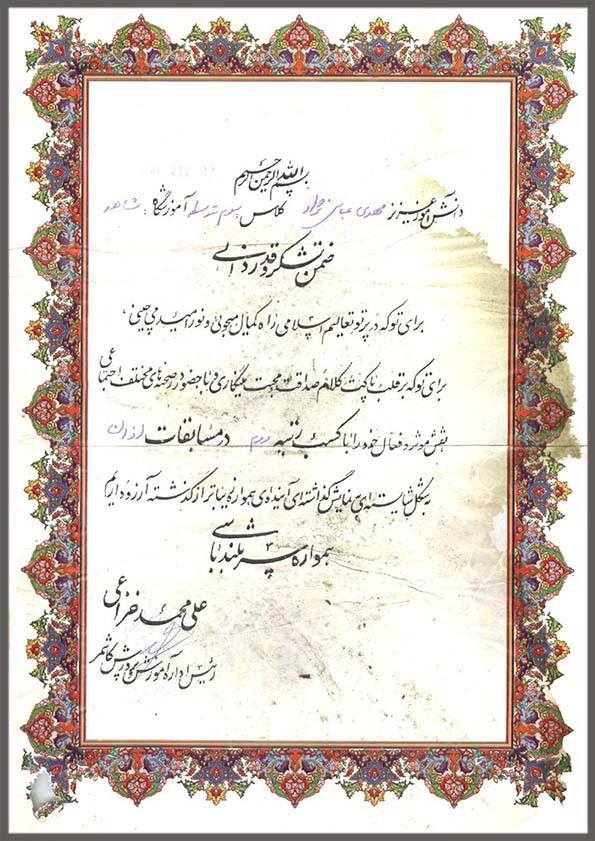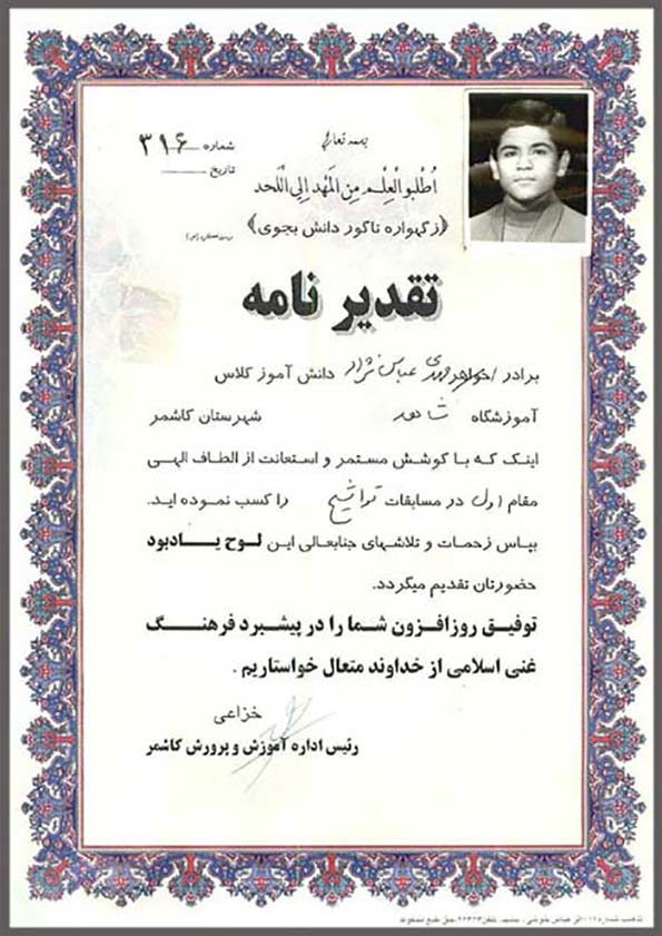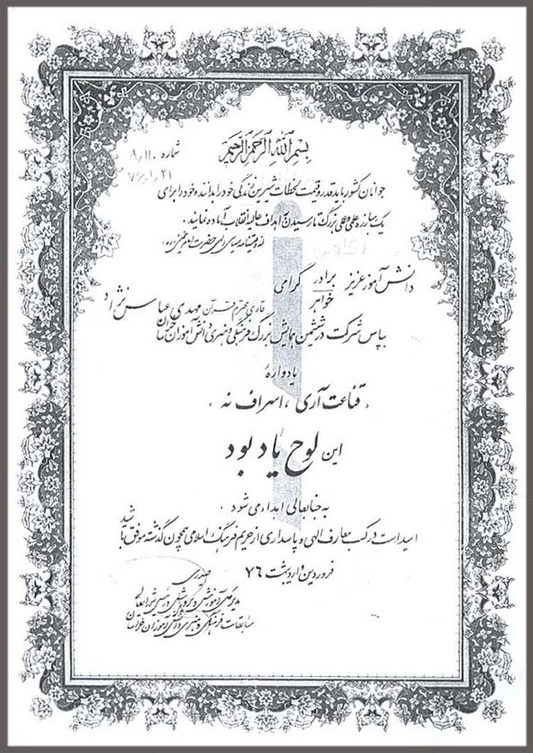 لوح تقدیر – آموزش پرورش کاشمر